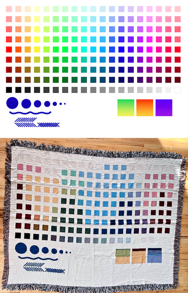 While digital mockups help visualize the look of the blankets, weaving is a distinct art form and here are some best practices to consider when designing. Download the Blanket Template Files here.